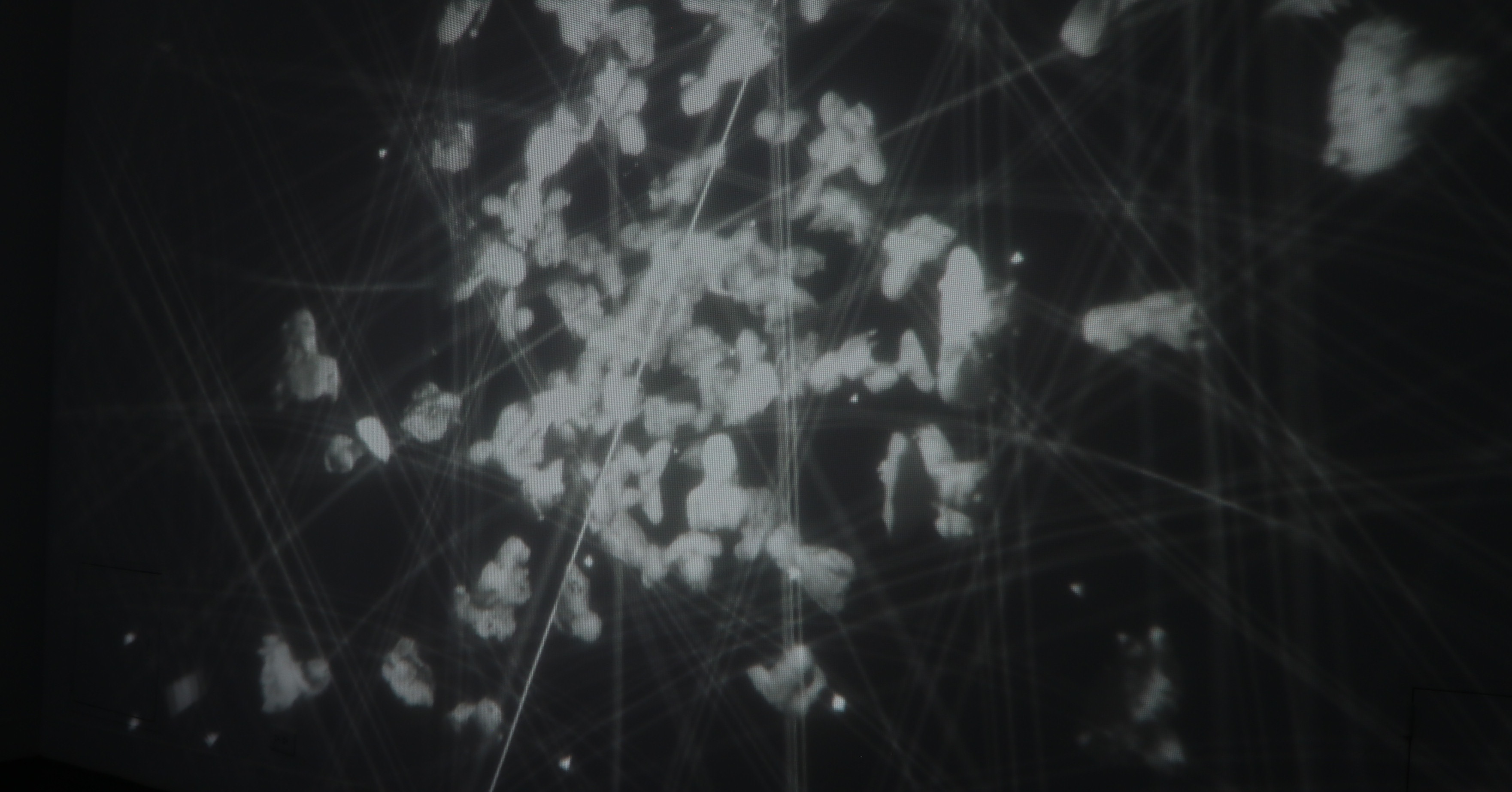 Models are scanned into our constructed space and left to float and sink as time and the rest of the model pushes against them. The virtual identities in the space are no longer influenced by the real world, but have their own set of natural laws.